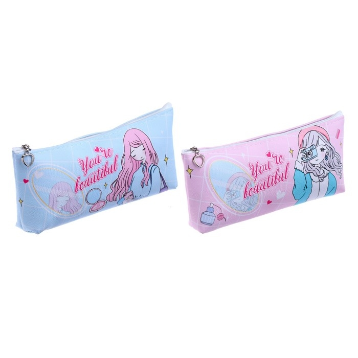 Пеналы школьный на молнии "Красотка", МИКС