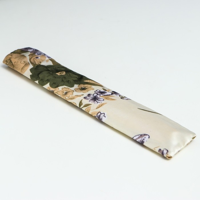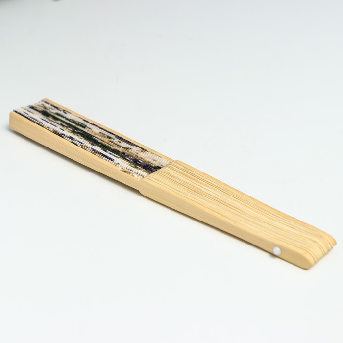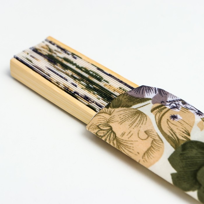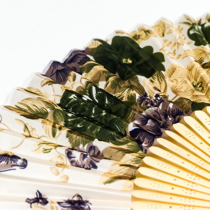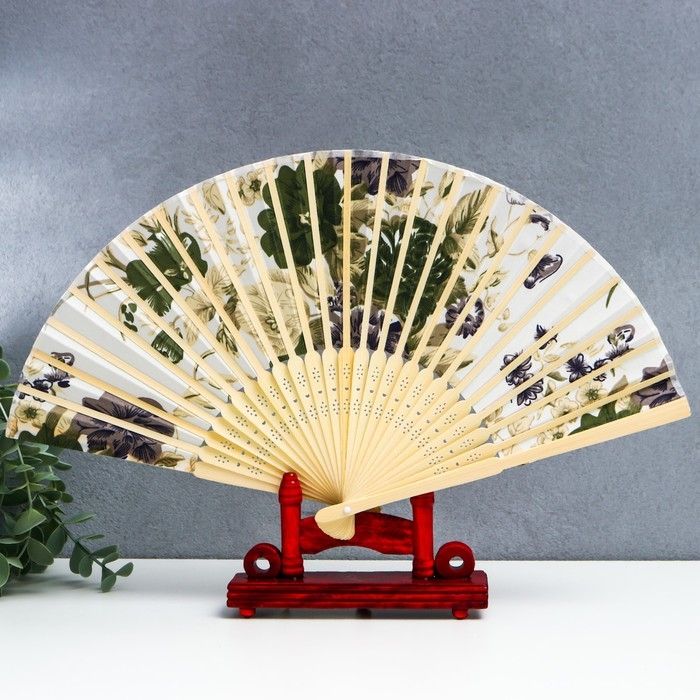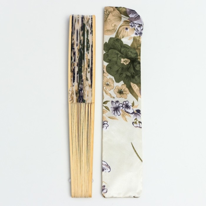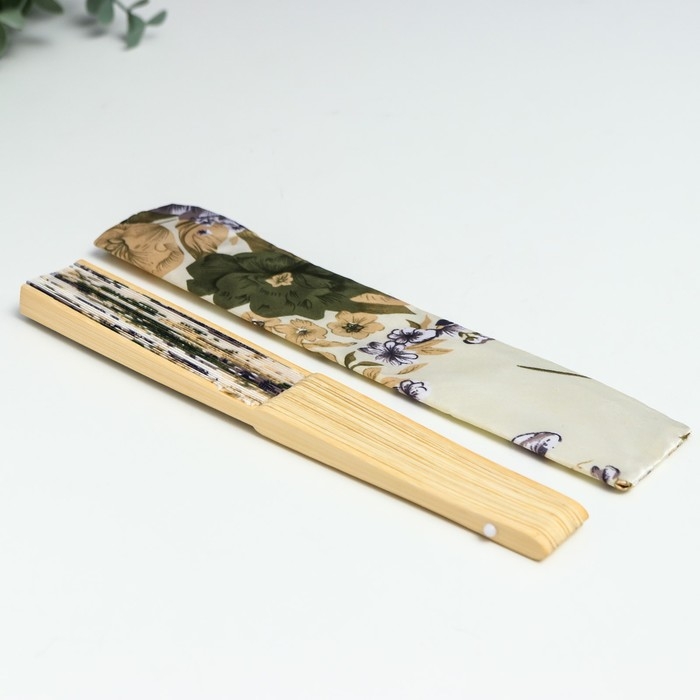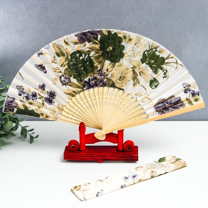 Веер бамбук, текстиль h=21 см "Цветы" с чехлом, бежевый
