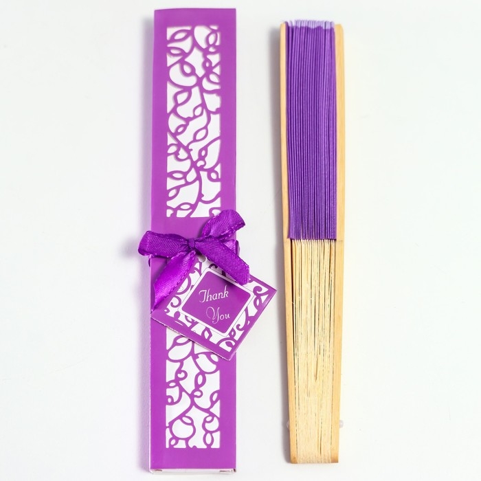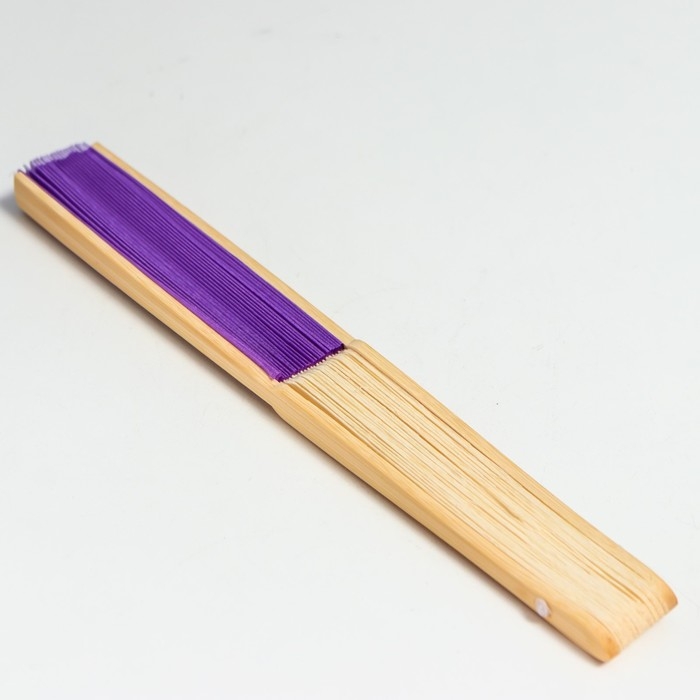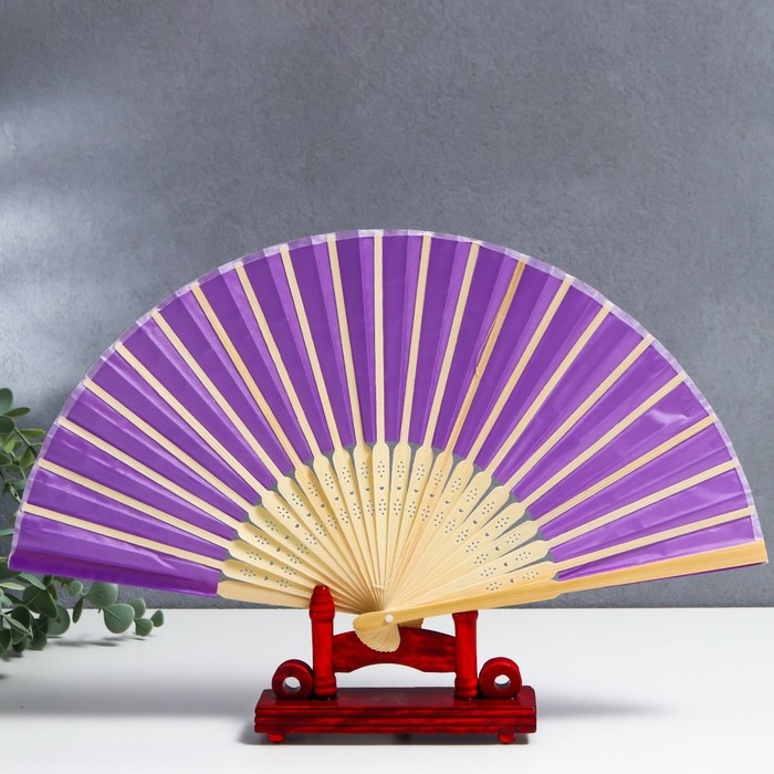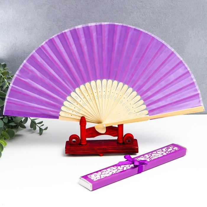 Веер бамбук, текстиль h=21 см "Моноцвет" в коробке, фиолетовый