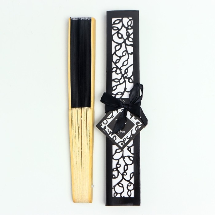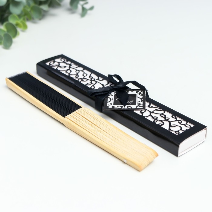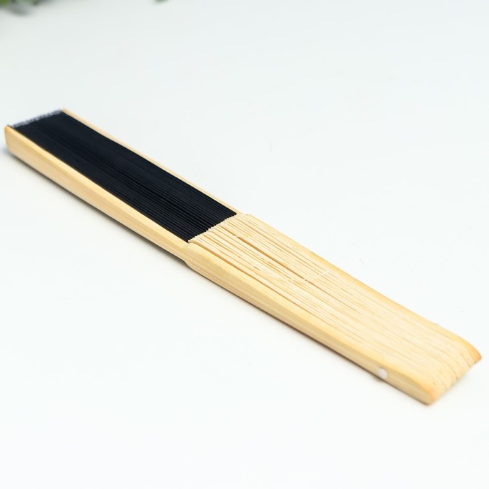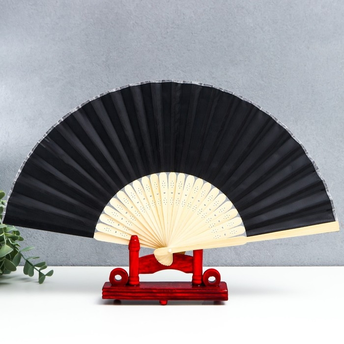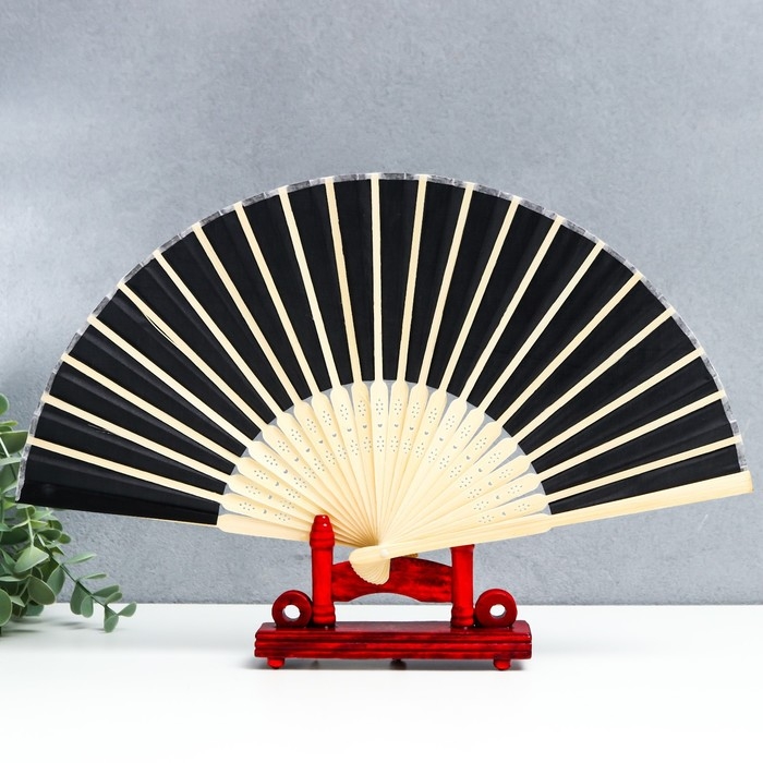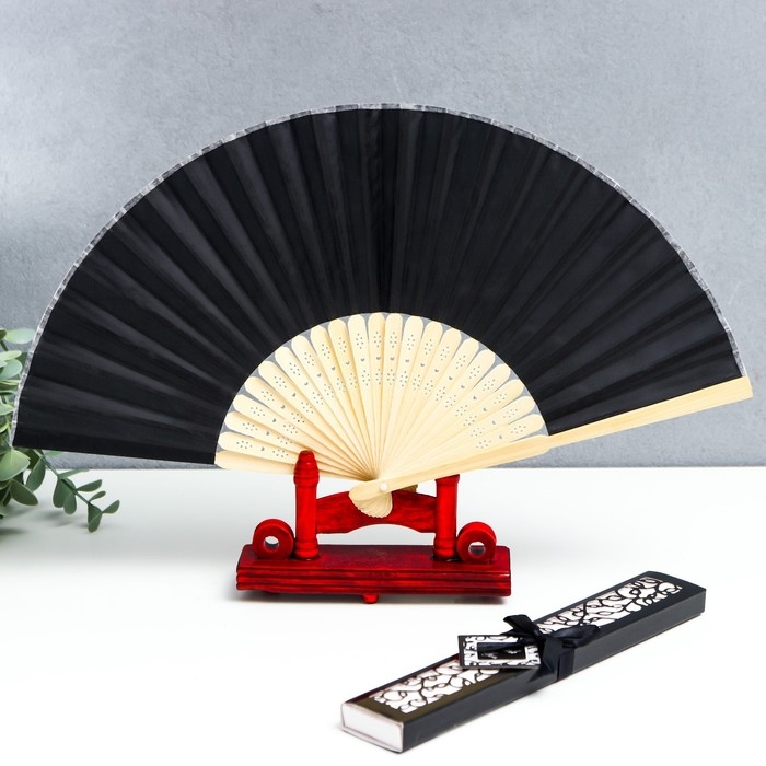 Веер бамбук, текстиль h=21 см "Моноцвет" в коробке, чёрный