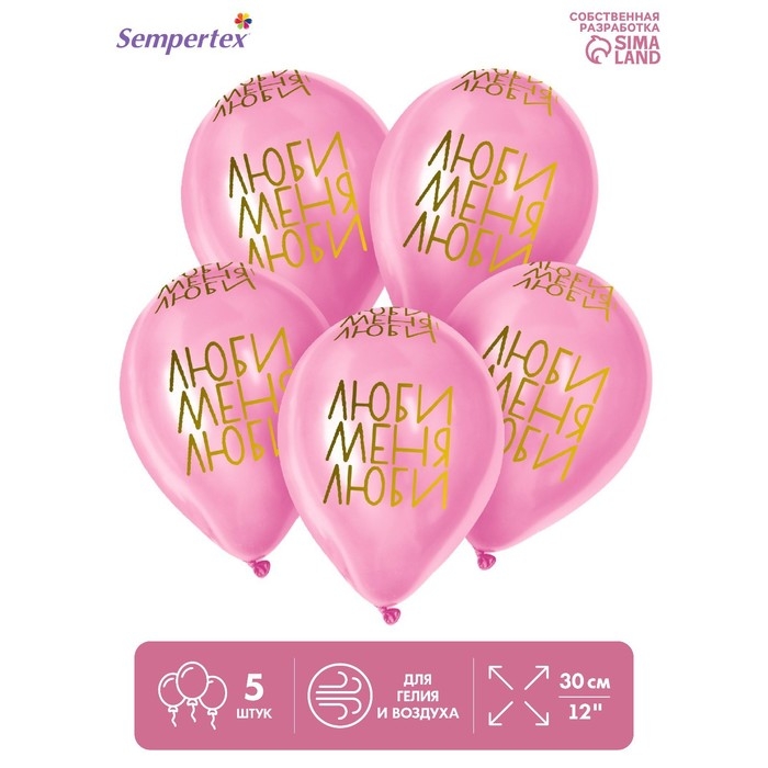 Воздушный шар латексный 12" «Люби меня, люби», пастель, цвет розовый, 5 шт.