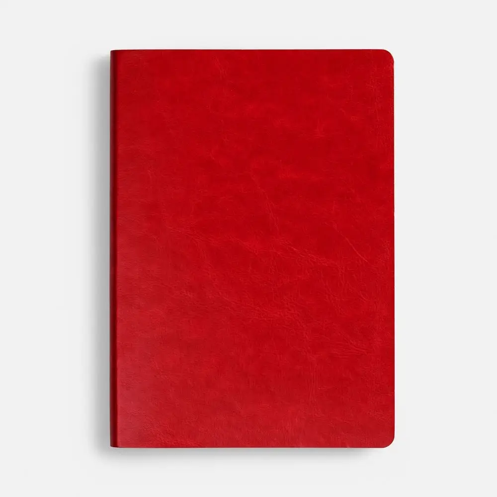 Ежедневник с гибкой обложкой, выполнен из материала Nebraska, красный PP, дополнен ляссе красного цвета.