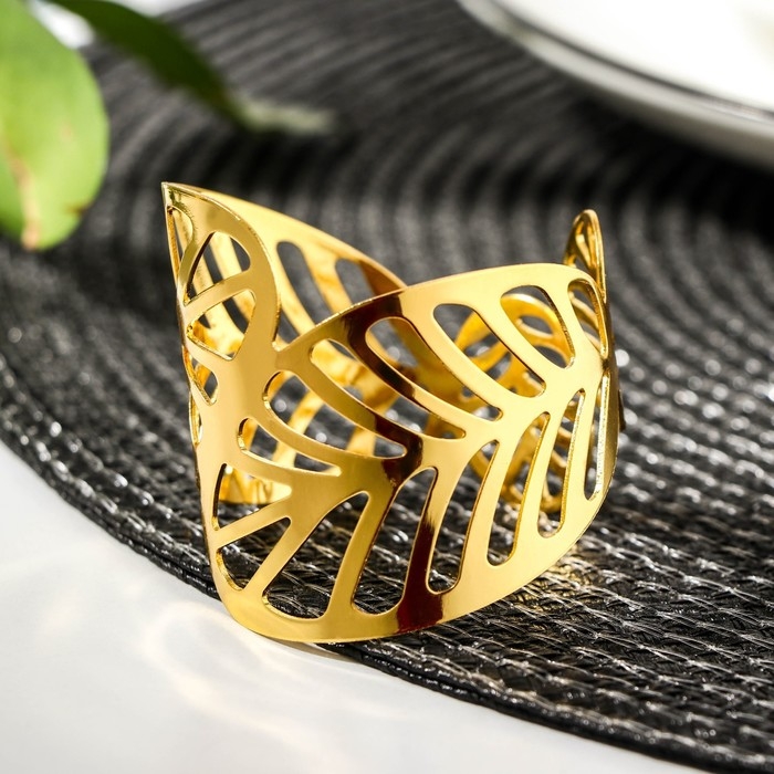 Кольцо для салфетки «Лист», 4,5×4,5×5 см, цвет золотой