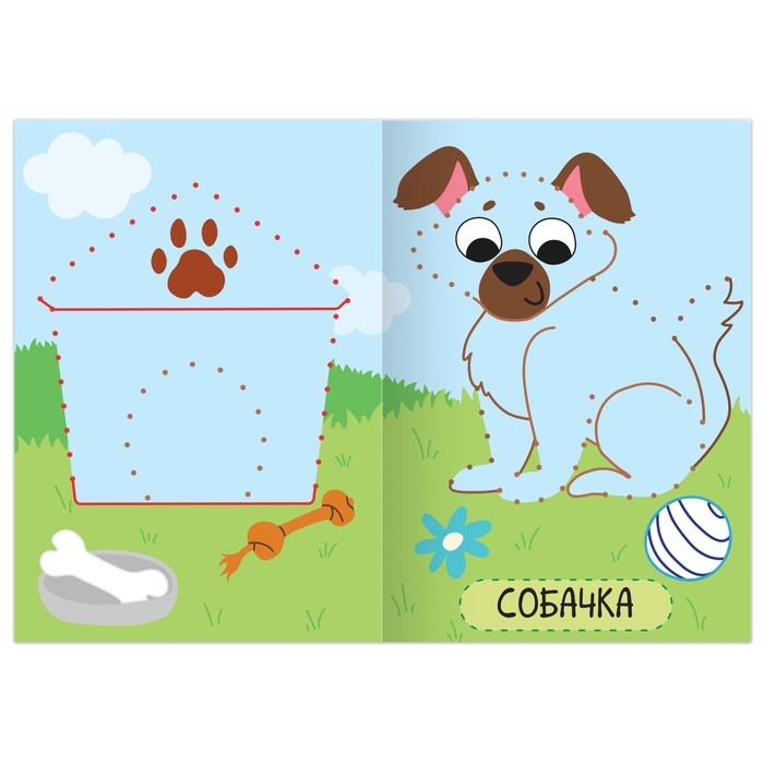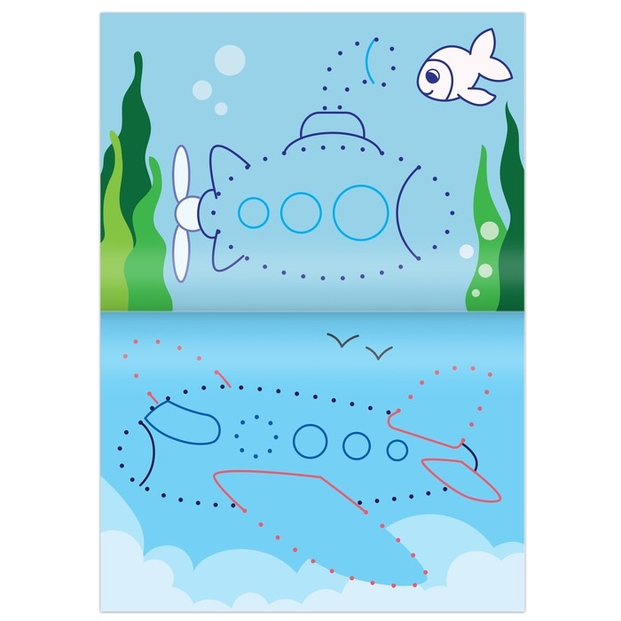Малышу предстоит не просто раскрасить картинку по образцу. Задача ребёнка — дополнить рисунки деталями, соединив точки линиями.