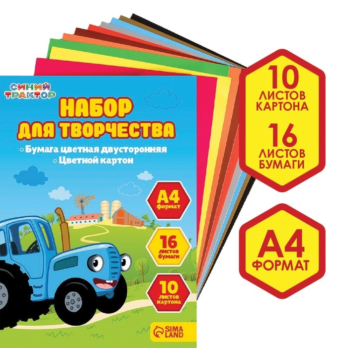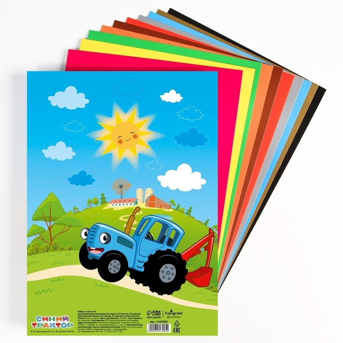 Набор "Синий трактор" А4: 10л цветного одностороннего картона + 16л цветной двусторонней бумаги