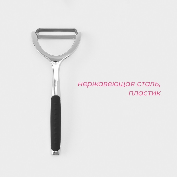 Овощечистка Доляна Venus, 18,5 см, ручка soft-touch, цвет чёрный