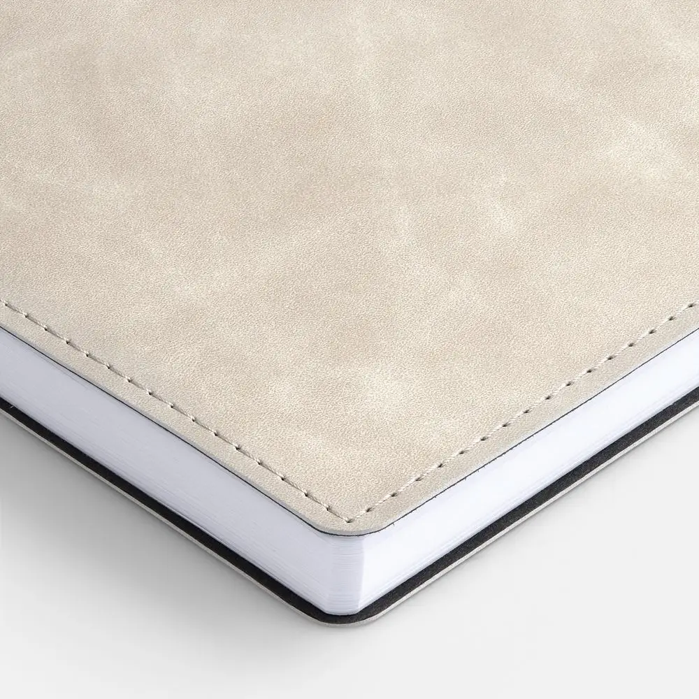 Ежедневник в клетку, с гибкой обложкой, выполнен из материала Nubuck Touch, светло-коричневый WW, дополнен ляссе бежевого цвета.