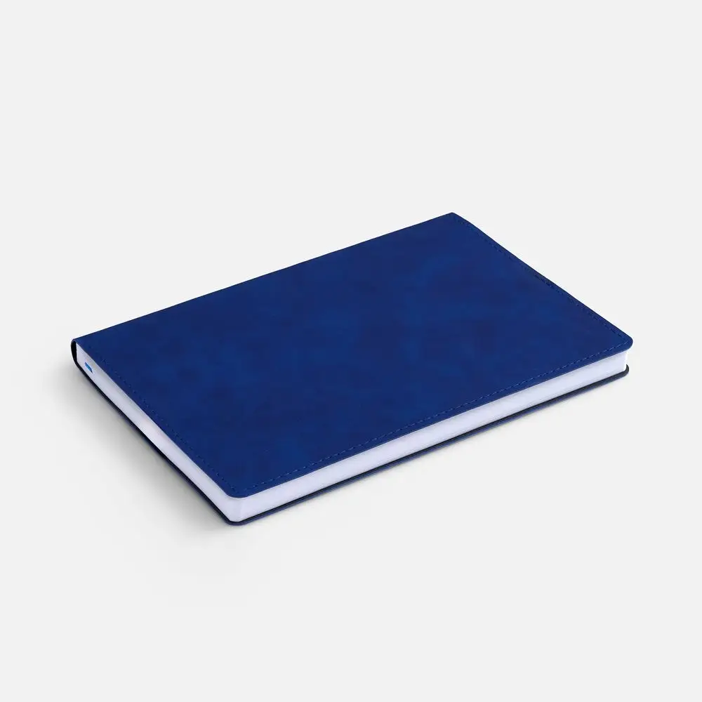 Ежедневник в клетку, с гибкой обложкой, выполнен из материала Nubuck Touch, синий НН, дополнен ляссе синего цвета.