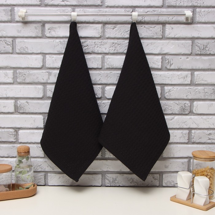 Набор кухонных полотенец "Доляна", цвет чёрный, 35х60см-2шт., 100% хл, вафля, 220 гр/м2