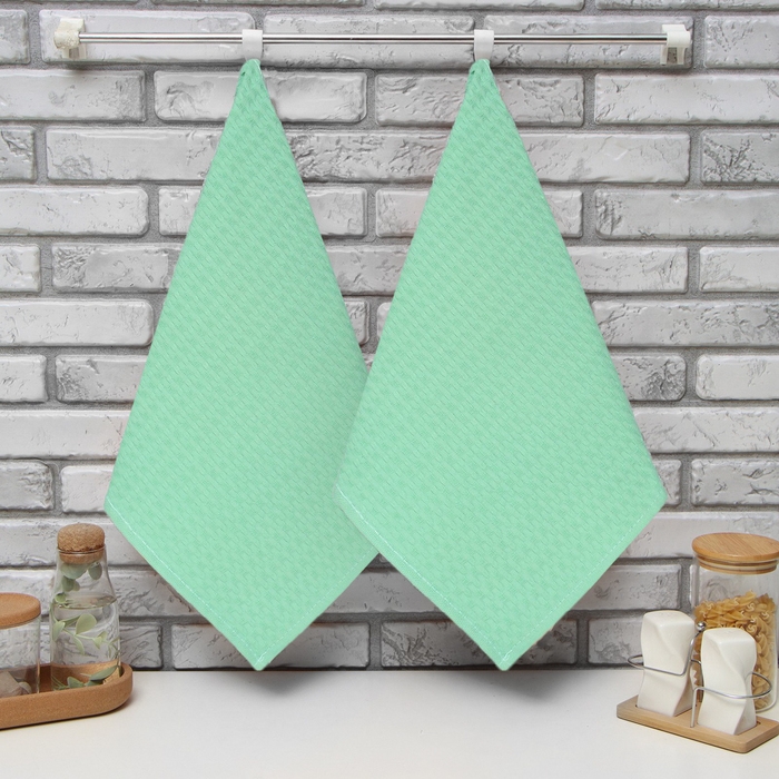 Набор кухонных полотенец Доляна, цвет салатовый, 35х60см-2шт, 100% хл, вафля, 220 гр/м2