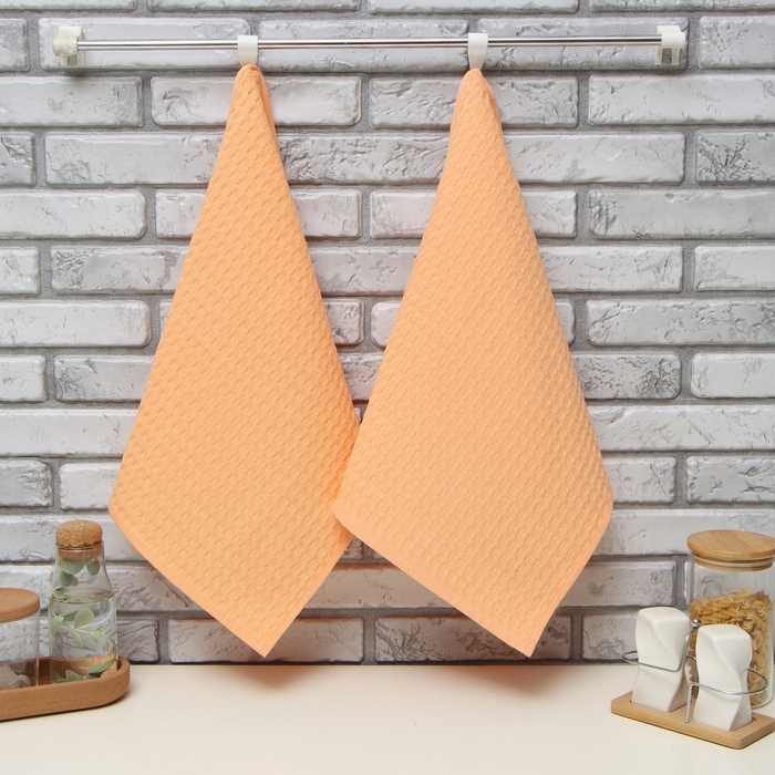 Набор кухонных полотенец Доляна, цвет коралловый, 35х60см-2шт, 100% хл, вафля, 220 гр/м2