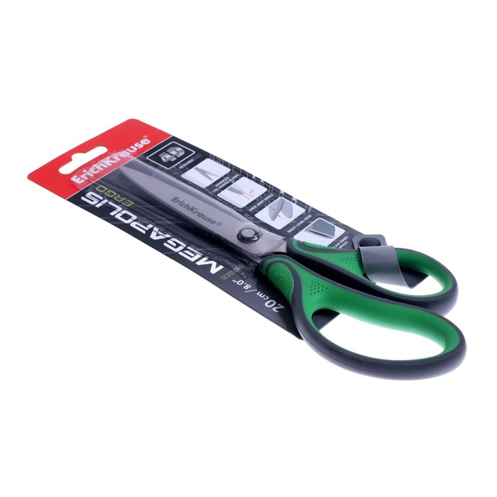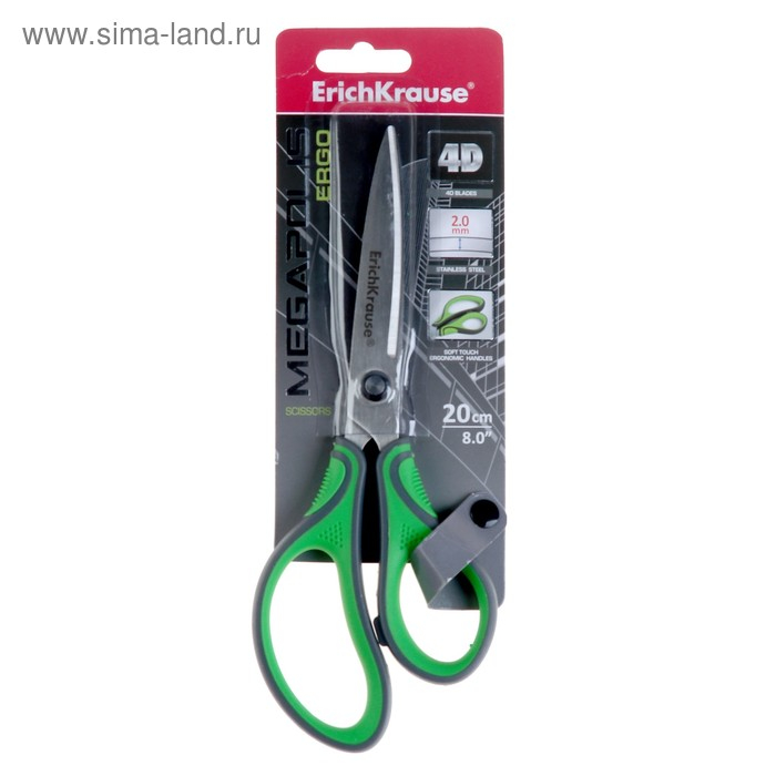 Ножницы Erich Krause Megapolis Ergo, 20 см, с усовершенствованными 4D-лезвиями, не ржавеют, ручки с резиновыми вставками, в блистере