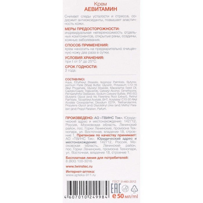 Крем АЕВитамин для лица - снимает следы усталости и стресса, содержит антиоксиданты, повышает эластичность кожи.