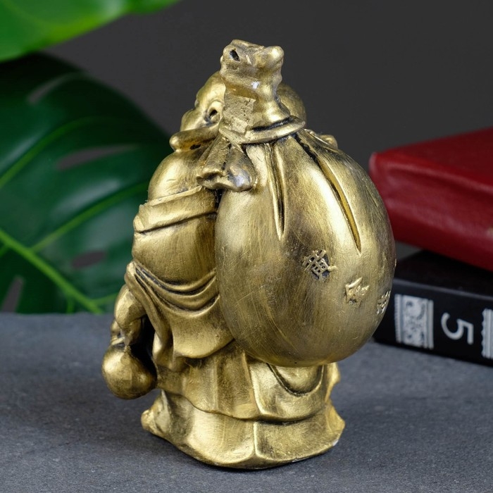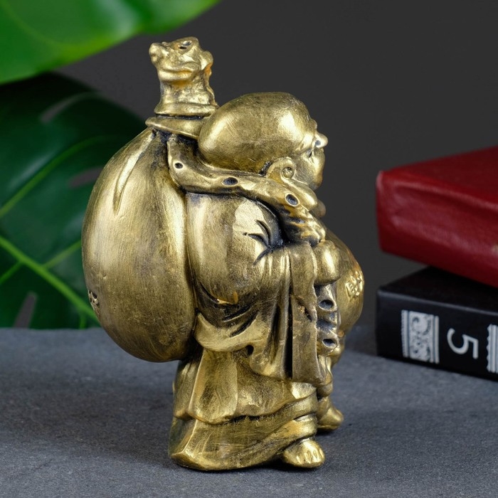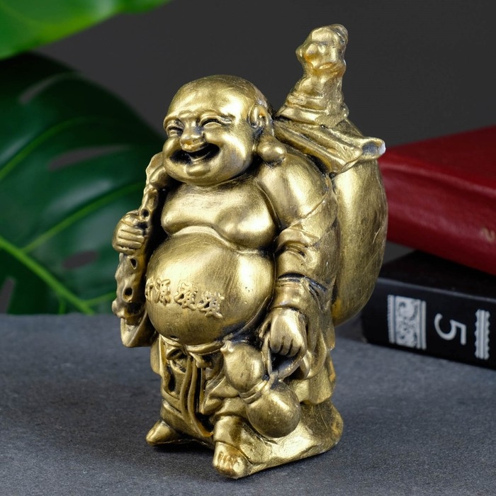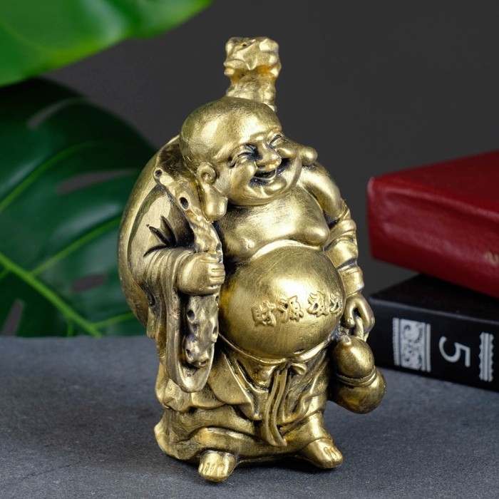 Фигура "Хотей с посохом за спиной" золото, 9х14х7см