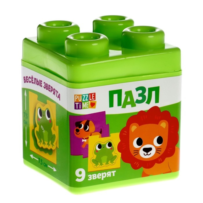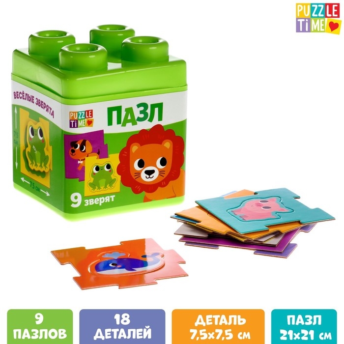 Пазлы в пластиковой упаковке «Весёлые зверята», 18 деталей