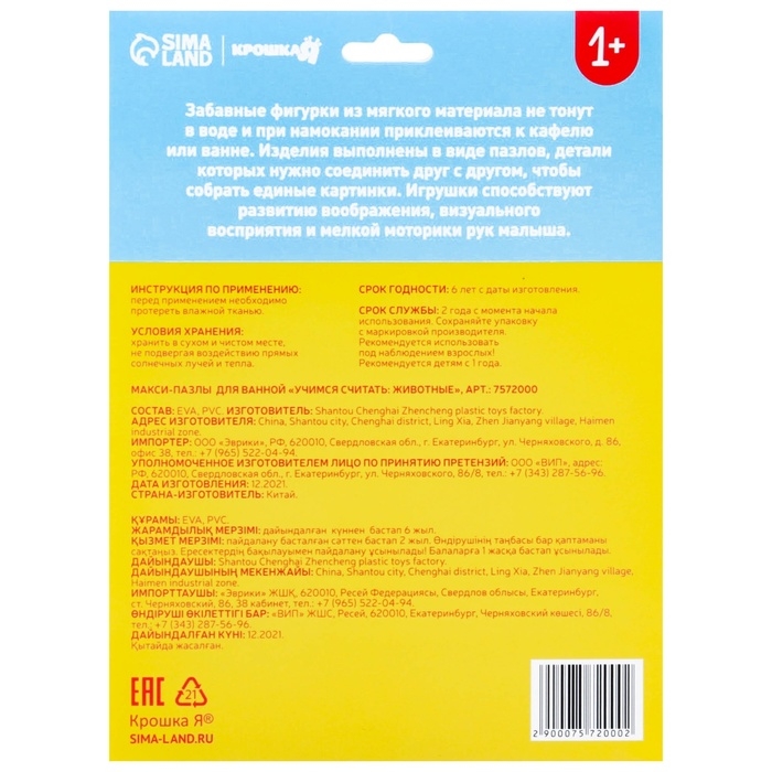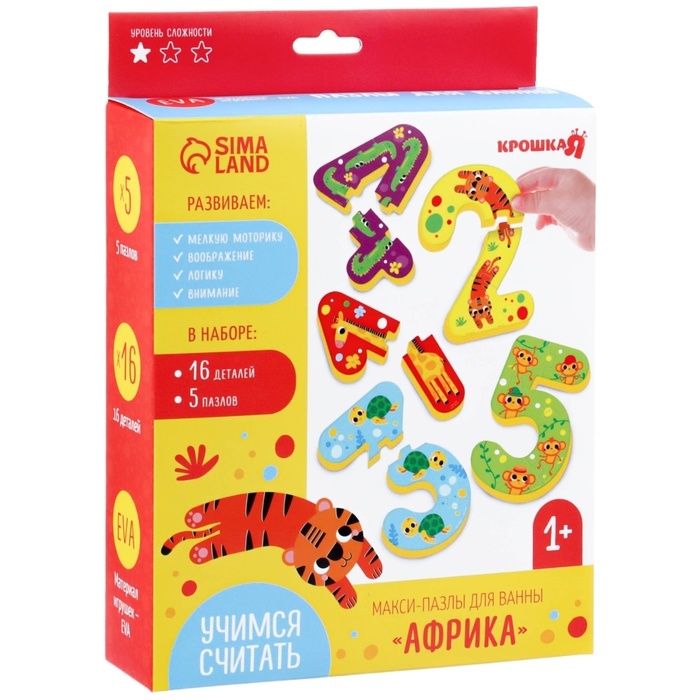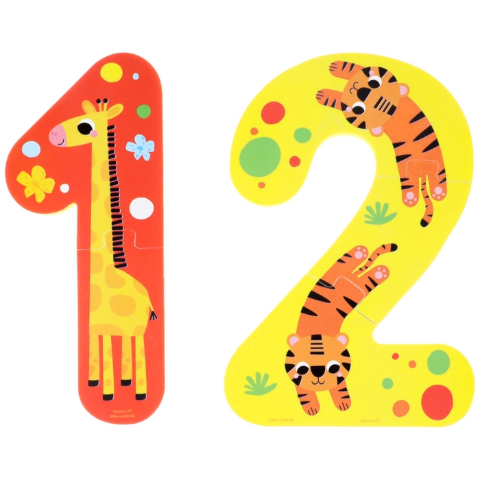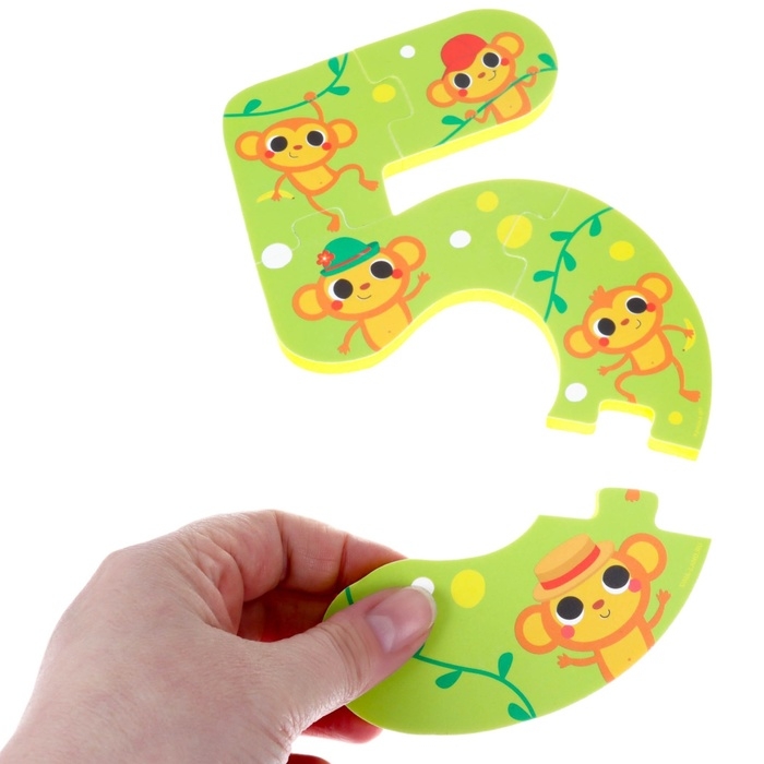 Мягкий пазл для малышей «Учим цифры: Животные», 5 пазлов, Крошка Я