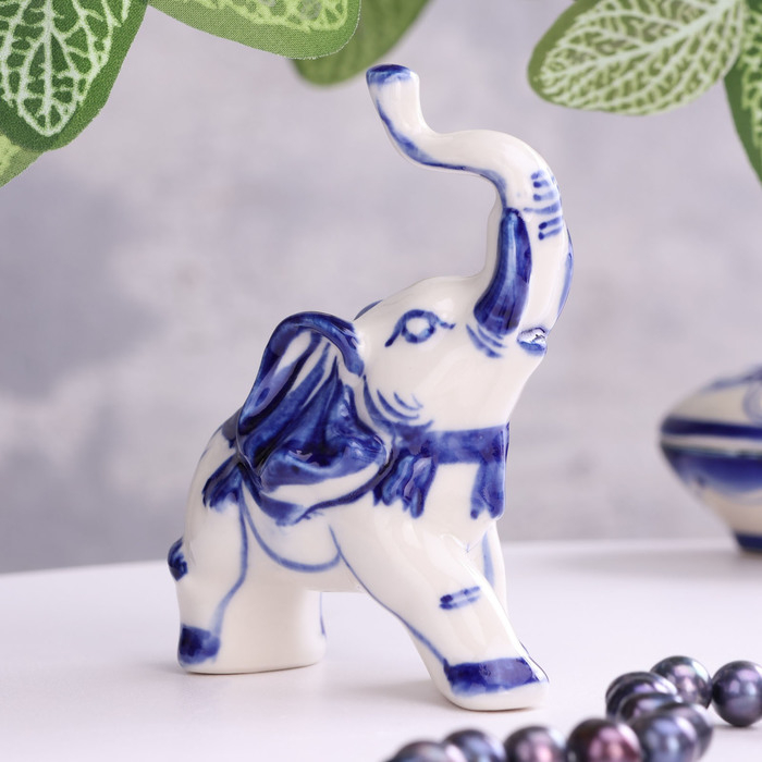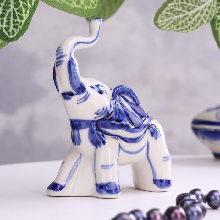 Сувенир подставка для колец "Слоник", 9 см, гжель, фарфор