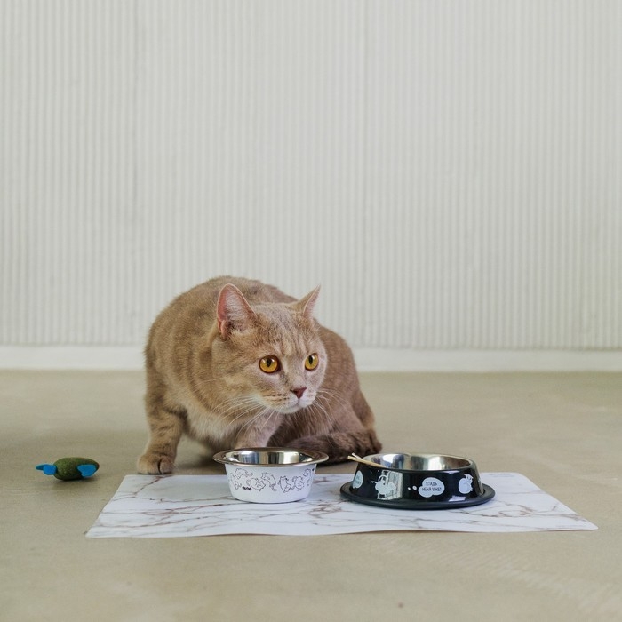 Миска для кошек сделана из нержавеющей стали, её легко мыть, она долговечна, подходит для еды и воды. Изделие имеет нескользящую резинку по окружности дна — ёмкость не будет скользить и перемещаться во время приёма пищи.