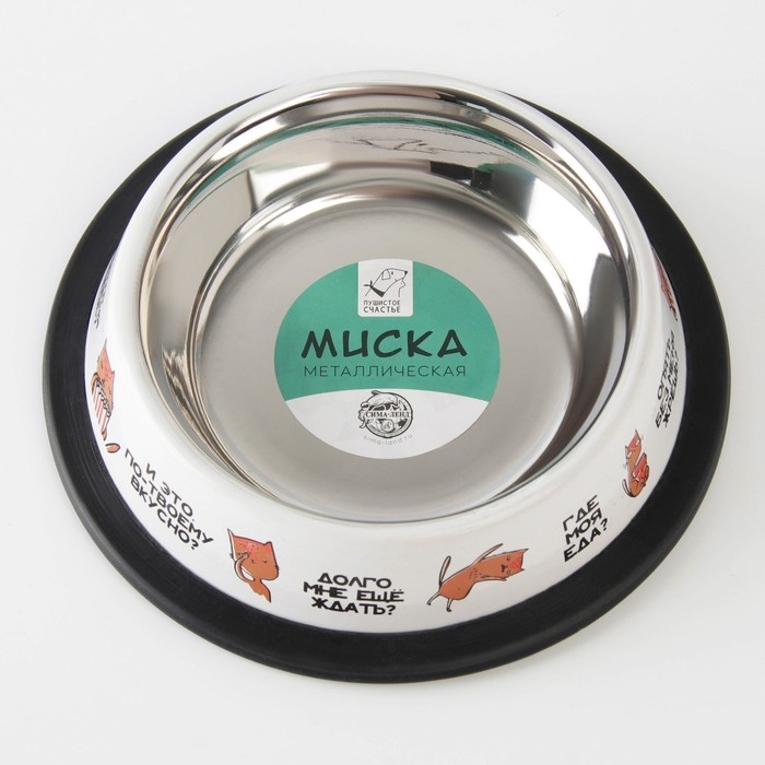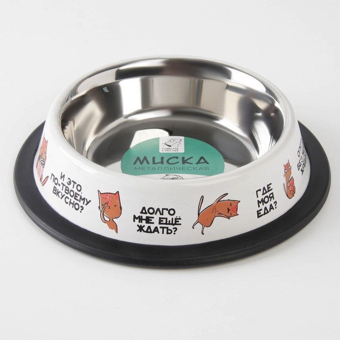 Миска металлическая для кошки с нескользящим основанием «Где моя еда?», 235 мл, 15х3.5 см