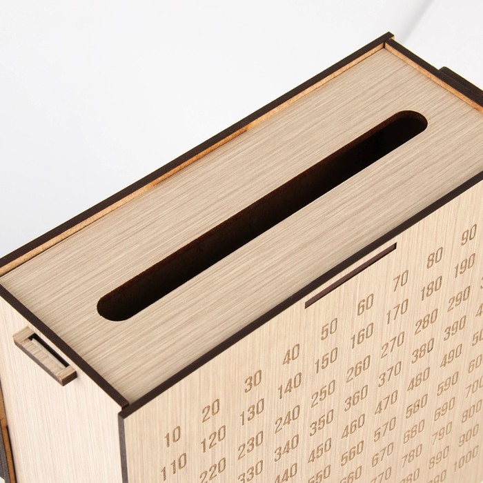 Зачёркивайте сумму цифр, которую положили в копилку и наблюдайте в динамике, как вы приближаетесь к мечте! Копилка "Копим на мечту" - отличный подарок или дополнение к основному подарку на любой праздник: день рождения, новый год, 14 февраля, 23 февраля, 8 марта. Да и просто без повода - себе, родственникам, друзьям. Также она является стильным и функциональным предметом интерьера.