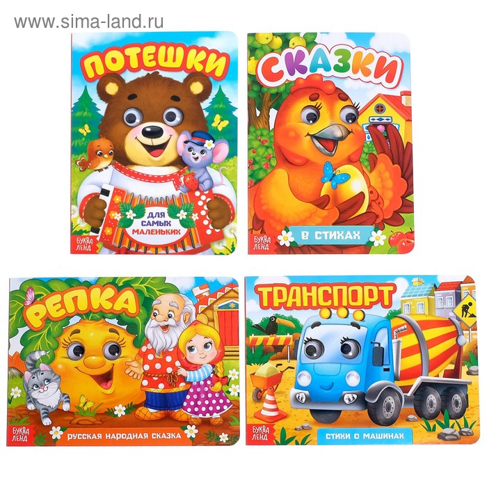 Книги с глазками картонные набор «Стихи и потешки для малышей», 4 шт. по 10 стр.