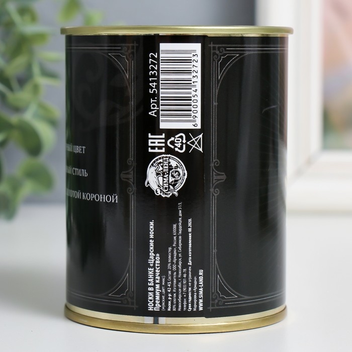 Носки в банке "Царские носки. Премиум качество" (внутри носки мужские, цвет чёрный) МИКС