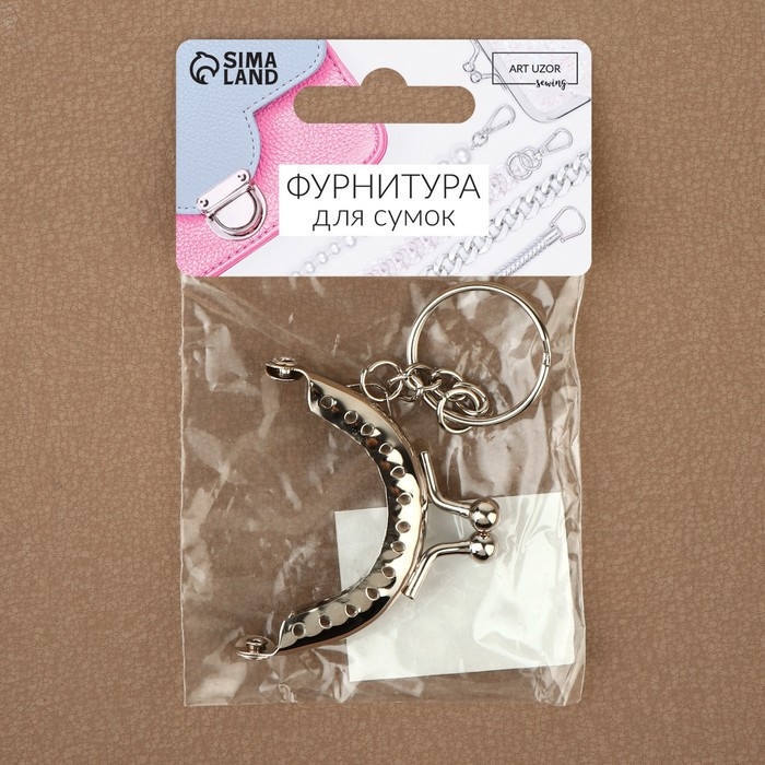 Фермуар пришивной «Полукруг», с кольцом, 5,3 × 4,5 см, цвет серебряный