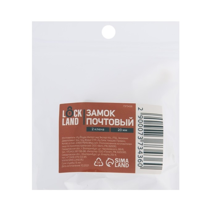 Замок почтовый LOCKLAND, 20 мм, 2 ключа, 1 шт.