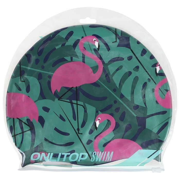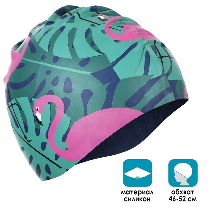 Шапочка для плавания детская ONLITOP «Фламинго с пальмами», силиконовая, обхват 46-52 см