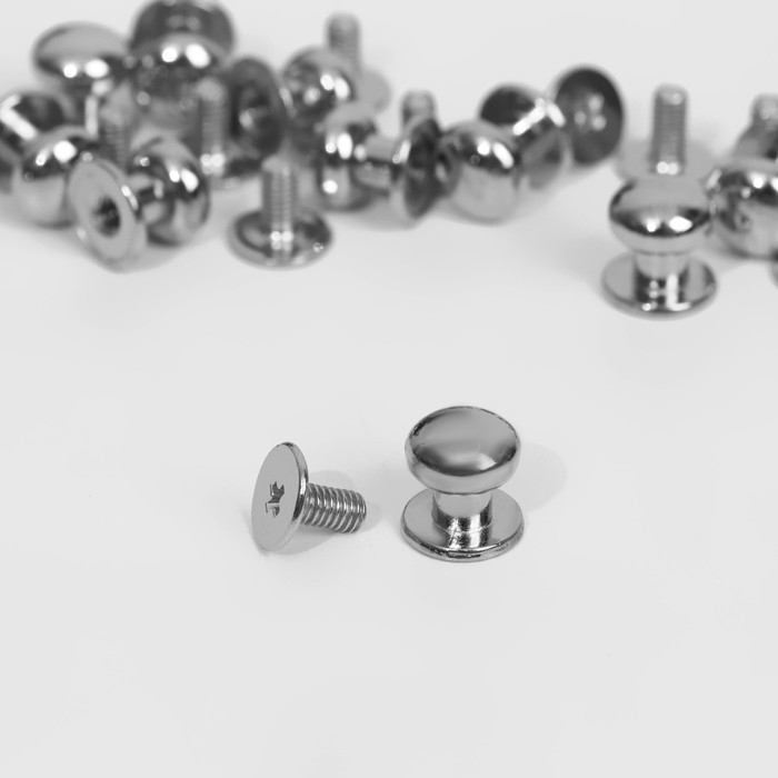 В наборе 10 штук серебряного цвета. Диаметр шляпки 8 мм; диаметр основания 8 мм; высота 10 мм.
