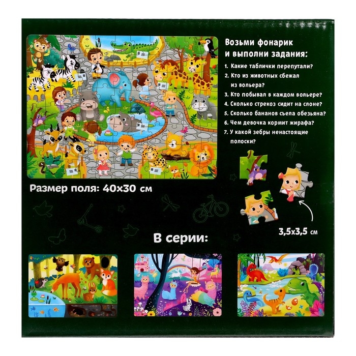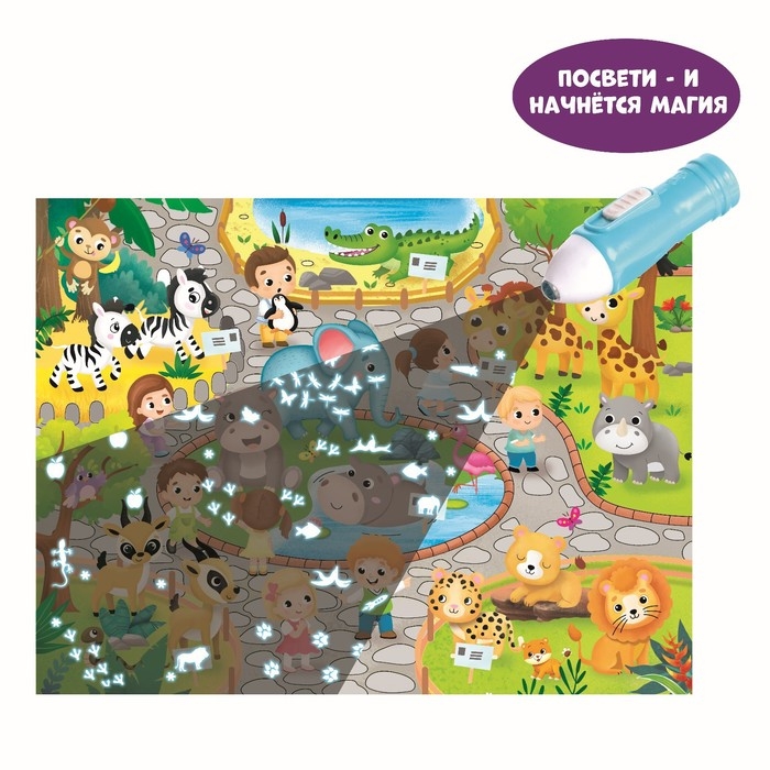 Пазл с фонариком «Весёлый зоопарк», 88 деталей