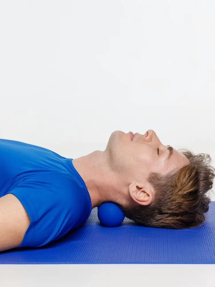Разместите мяч на точке, в которой чувствуется дискомфорт, надавите и прокатывайте его из стороны в сторону в течение нескольких минут до ощущения расслабления.