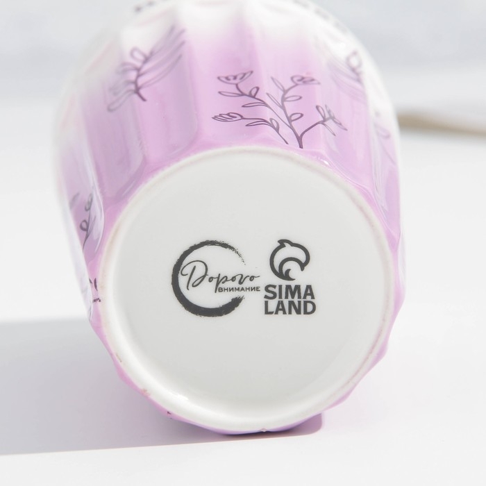 Стакан керамический граненый «Жизнь - счастье», 230 мл, цвет белый