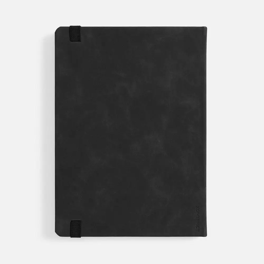 Ежедневник с твердой обложкой, выполнен из материала Nubuck Touch, черный AA, дополнен ляссе в цвет обложки.