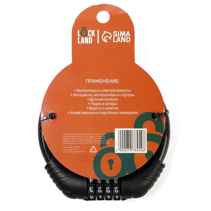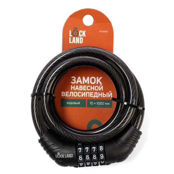 Замок навесной велосипедный LOCKLAND, кодовый,10х1000 мм
