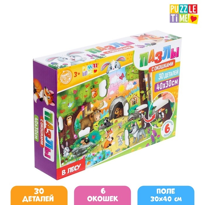 Пазлы с окошками «В лесу», 30 деталей