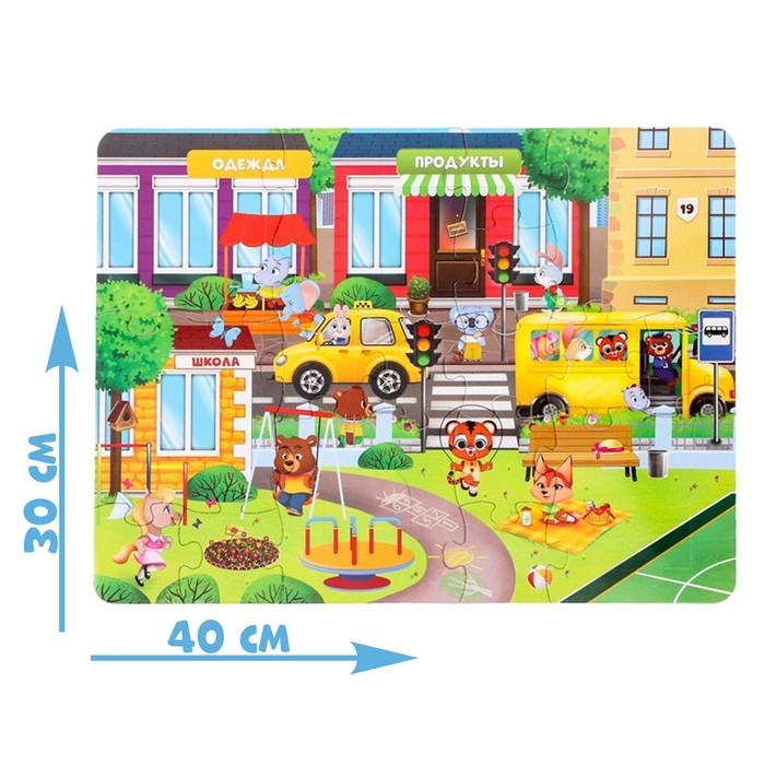 В коробке 30 деталей двух разных размеров: классические тайлы и большие, с окошками внутри. Собрав все детали, вы получите картинку размером 40 × 30 см.