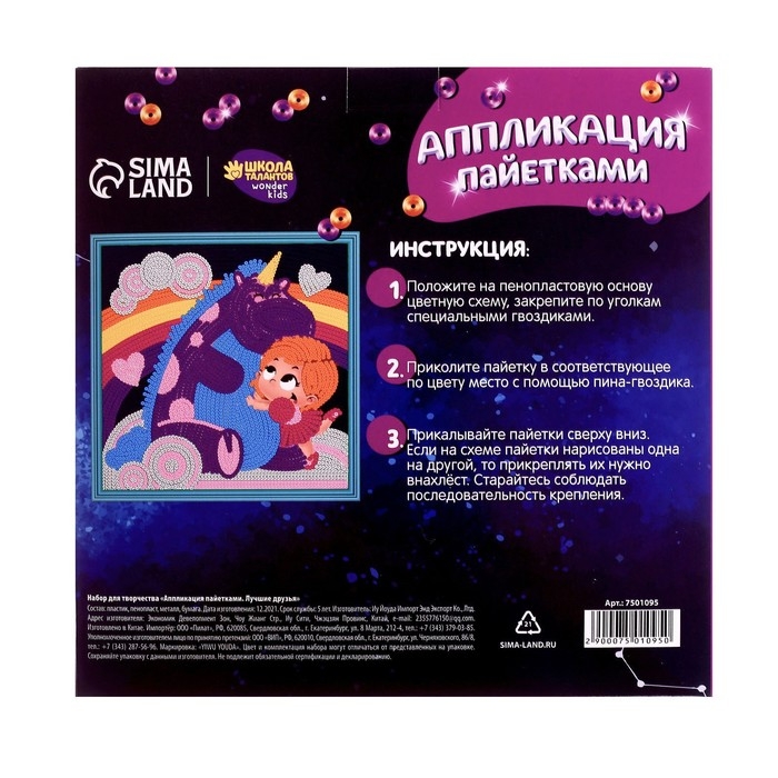 Аппликация пайетками для детей «Волшебный единорог», набор для творчества