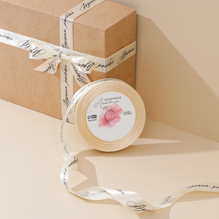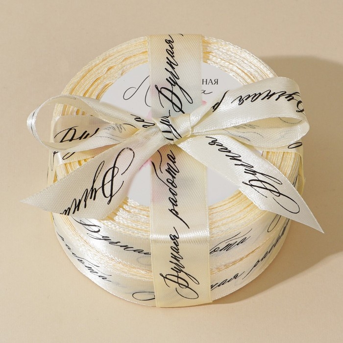 Лента атласная, подарочная упаковка, «Ручная работа», молочная, 2 см х 22.5 м