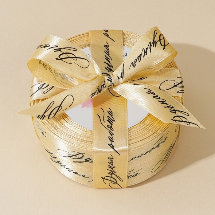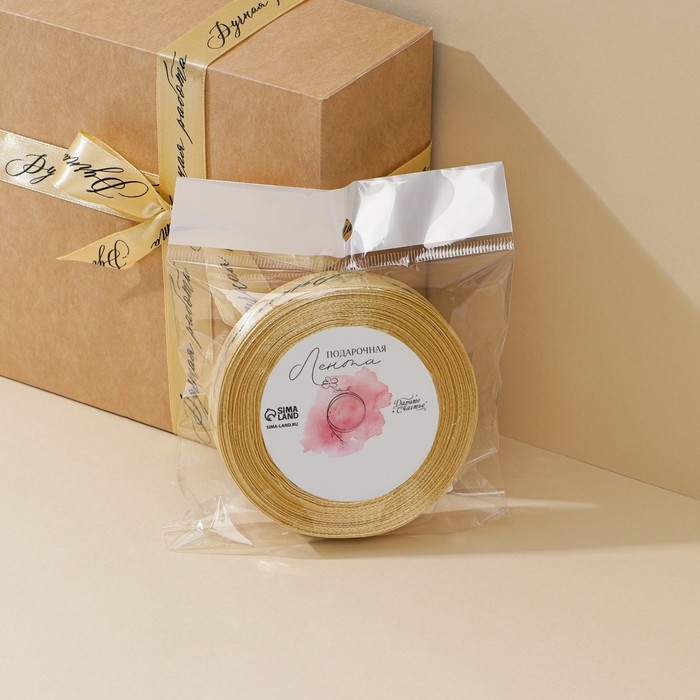Лента атласная, подарочная упаковка, «Ручная работа», золотая, 2 см х 22.5 м