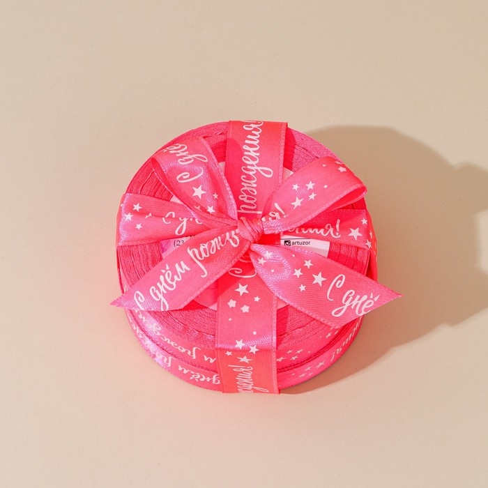 Лента атласная, подарочная упаковка, «С днём рождения», розовая, 2 см х 22.5 м
