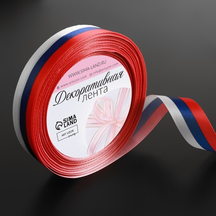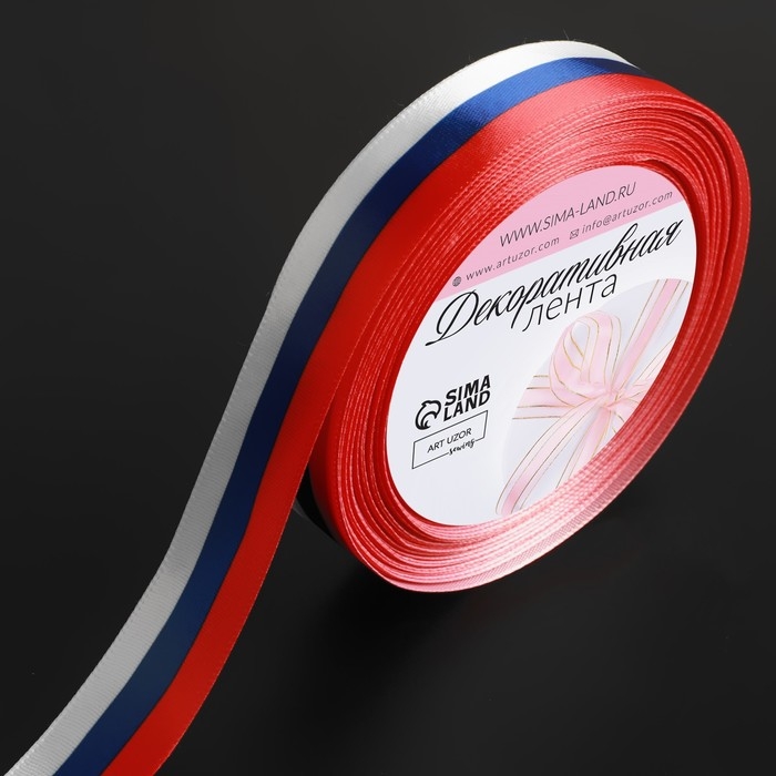 Лента атласная «Триколор», односторонняя, 20 мм, 18 ± 1 м
