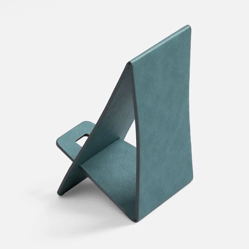 Складная подставка для телефона с вырубкой под шнур зарядного устройства. Выполнена из материала Petrus.