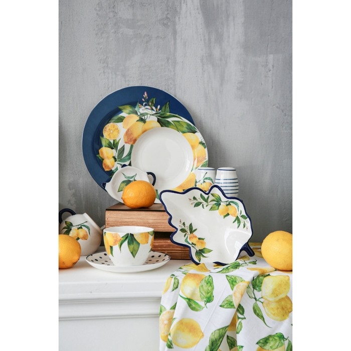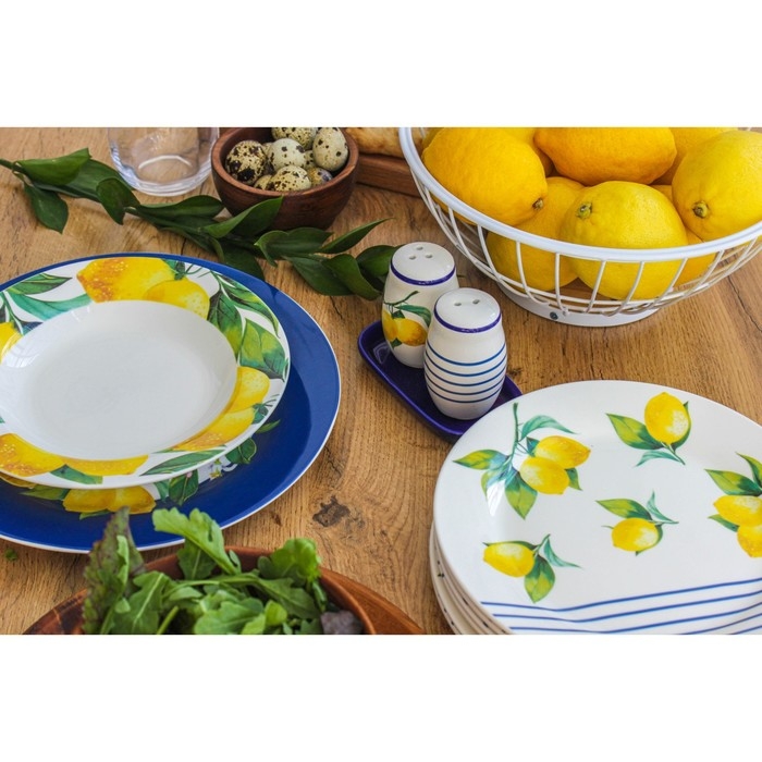 Посуда серии «Лимоны» от торговой марки Доляна изготовлена из качественного доломита. Благодаря оригинальному дизайну, изделия гармонично дополнят сервировку стола, а также прекрасно подойдут в качестве подарка. Посуда выполнена в ярких тонах, что позволит вписать её практически в любой интерьер.