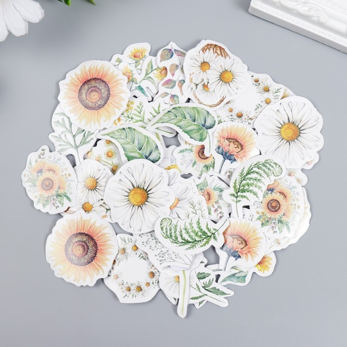 Наклейки для творчества "Ромашки и подсолнухи" набор 46 шт 4,4х4,4х1,1 см