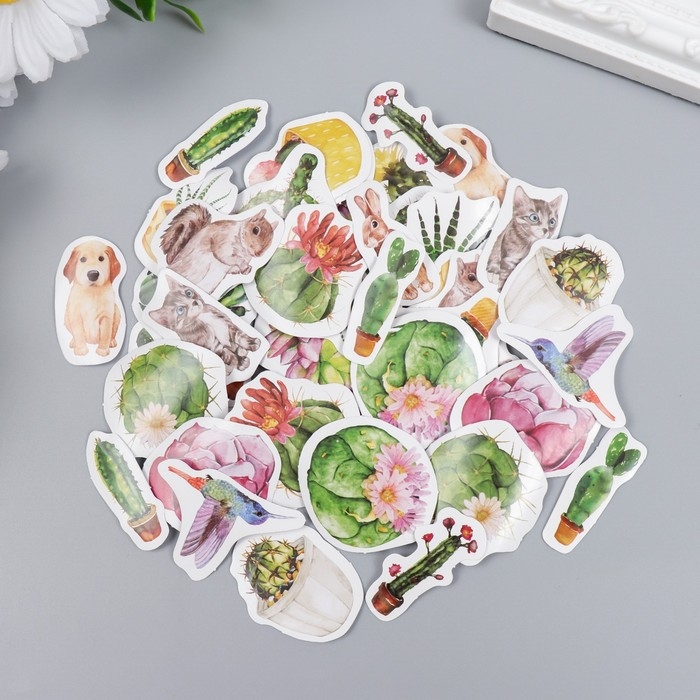 Наклейки для творчества "Кактусы и животные" набор 46 шт 4,4х4,4х1,1 см