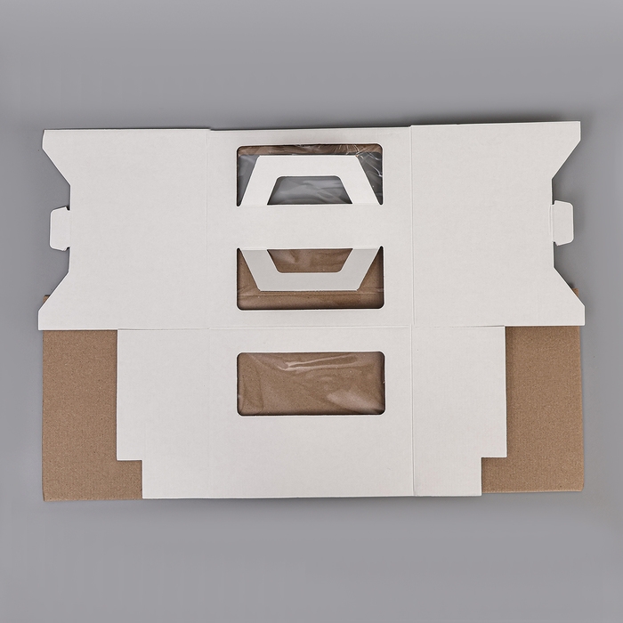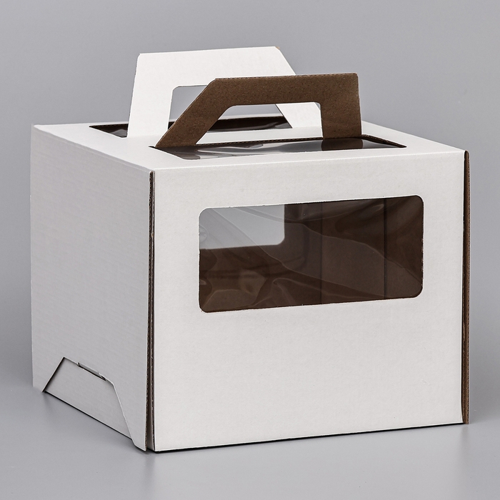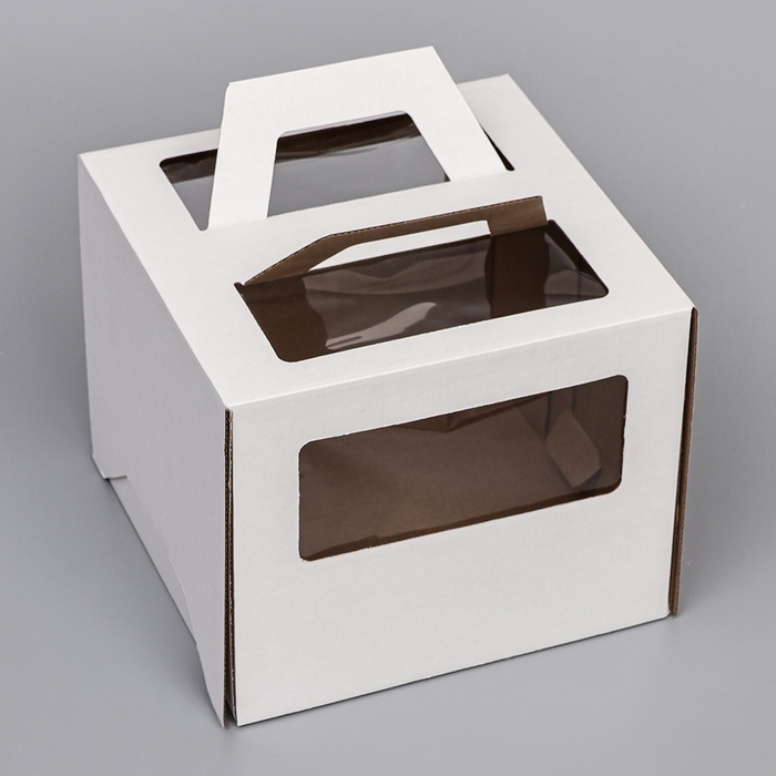 Коробка под торт 2 окна, с ручками, белая, 24 х 24 х 20 см