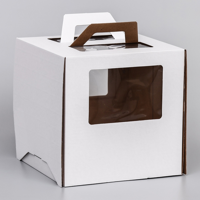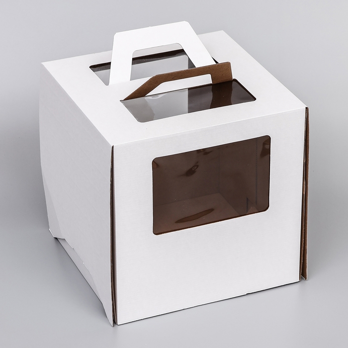 Коробка под торт 2 окна, с ручками, белая, 28 х 28 х 28 см