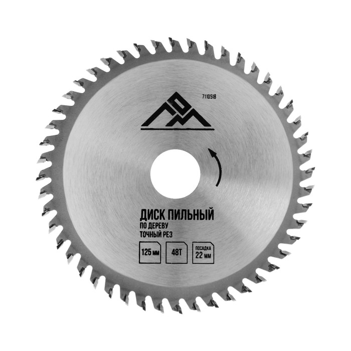 Диск пильный по дереву ЛОМ, точный рез, 125 х 22 мм, 48 зубьев