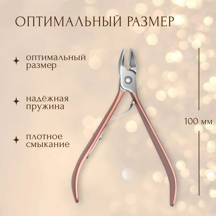 Кусачки маникюрные для кутикулы,10 см, длина лезвия - 9 мм, цвет серебристый/розовое золото